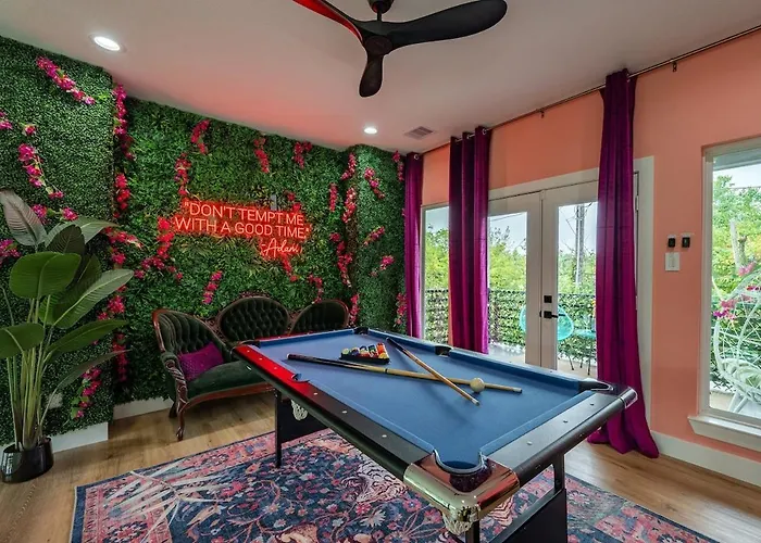 ( ex. Garden Of Eden Downtown Getaway - Hot Tub, Game Room, Neon Vibes )